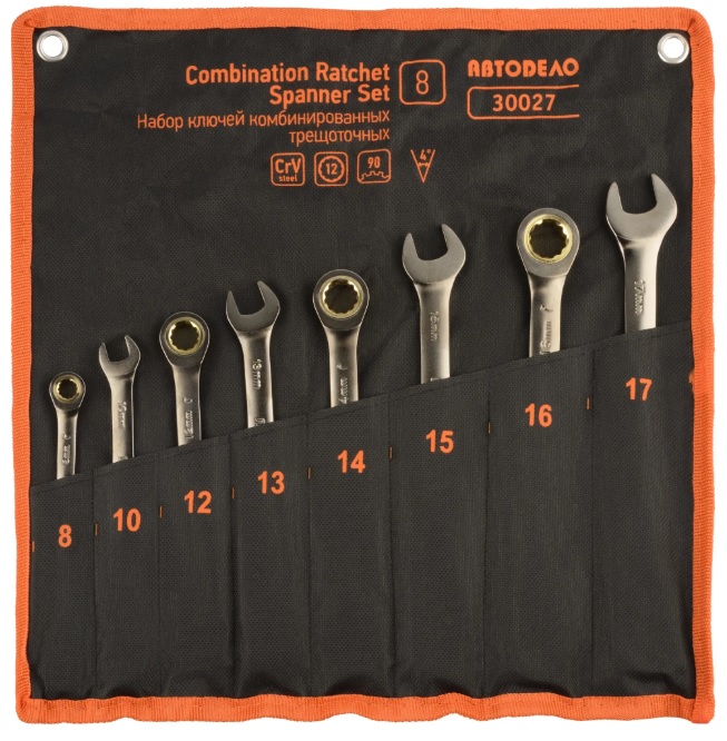 Набор комбинированных трещёточных ключей 8 шт. (8-17мм, 90 зубцов в сумке) АвтоDело
