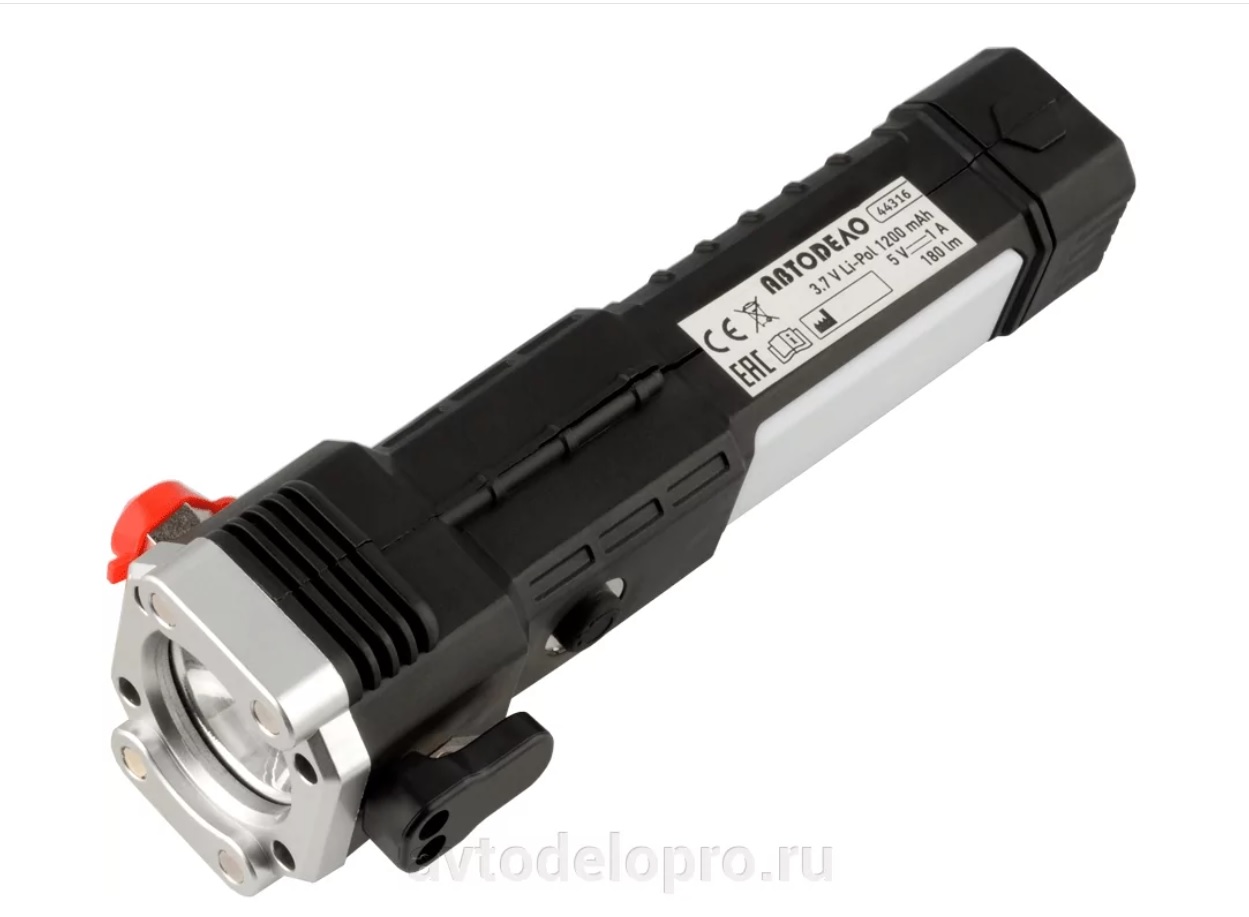 Фонарь светодиодный аварийный 1W COB+1W LED, 180Lm, Li-ion 1200 mAh АвтоDело
