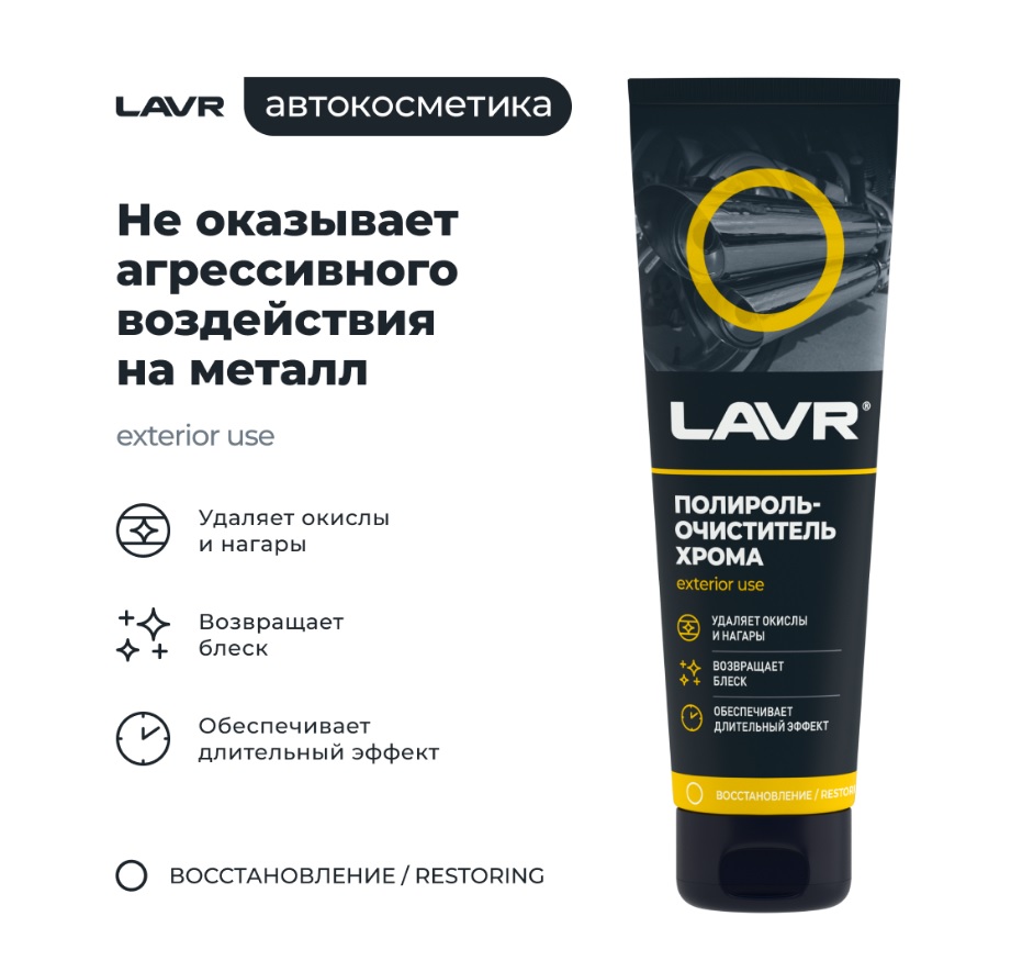 Компания ЛидерАвто г. Воронеж предлагает оптом товар Полироль-очиститель хрома LAVR 100 мл, артикул 9542, по цене 263 ₽. за шт